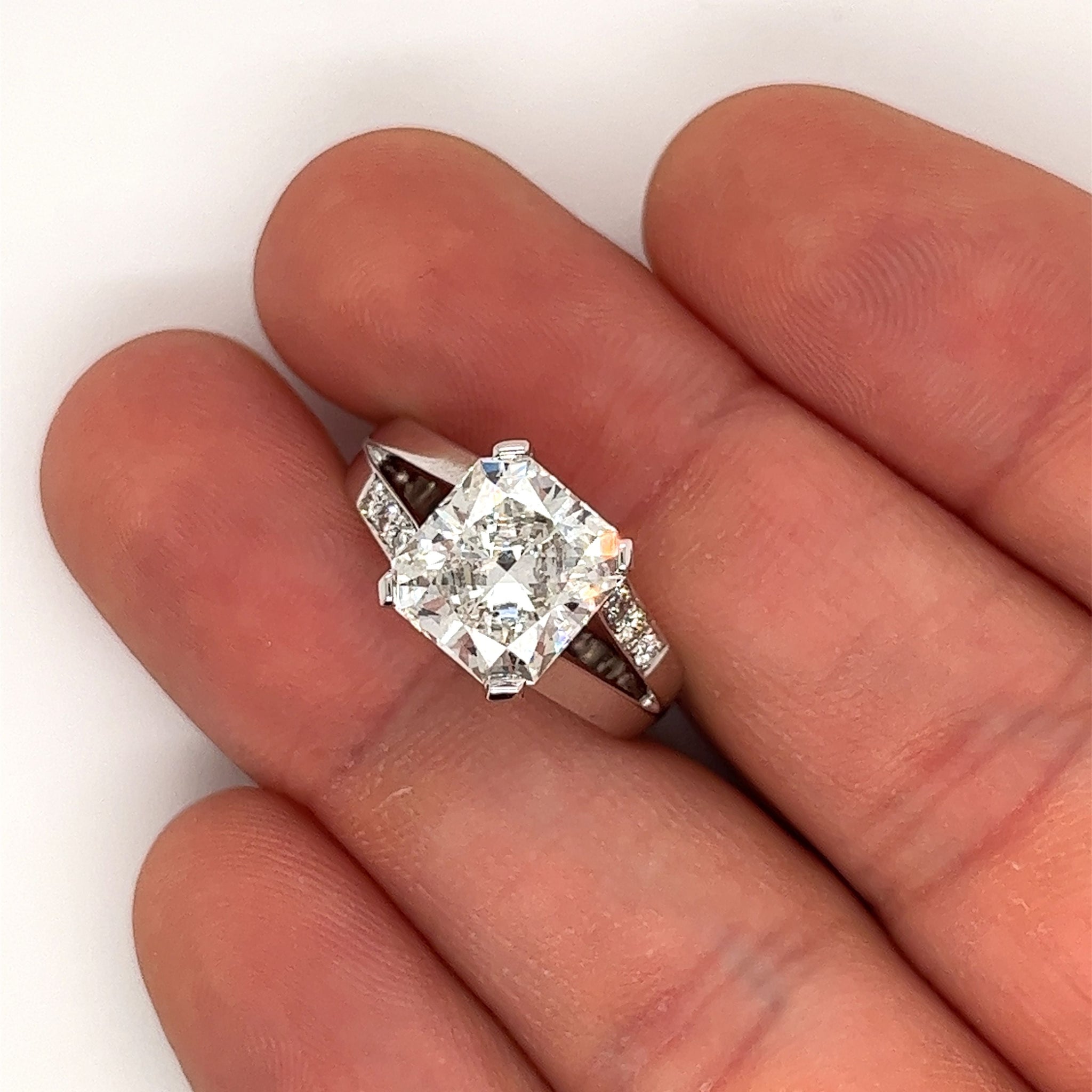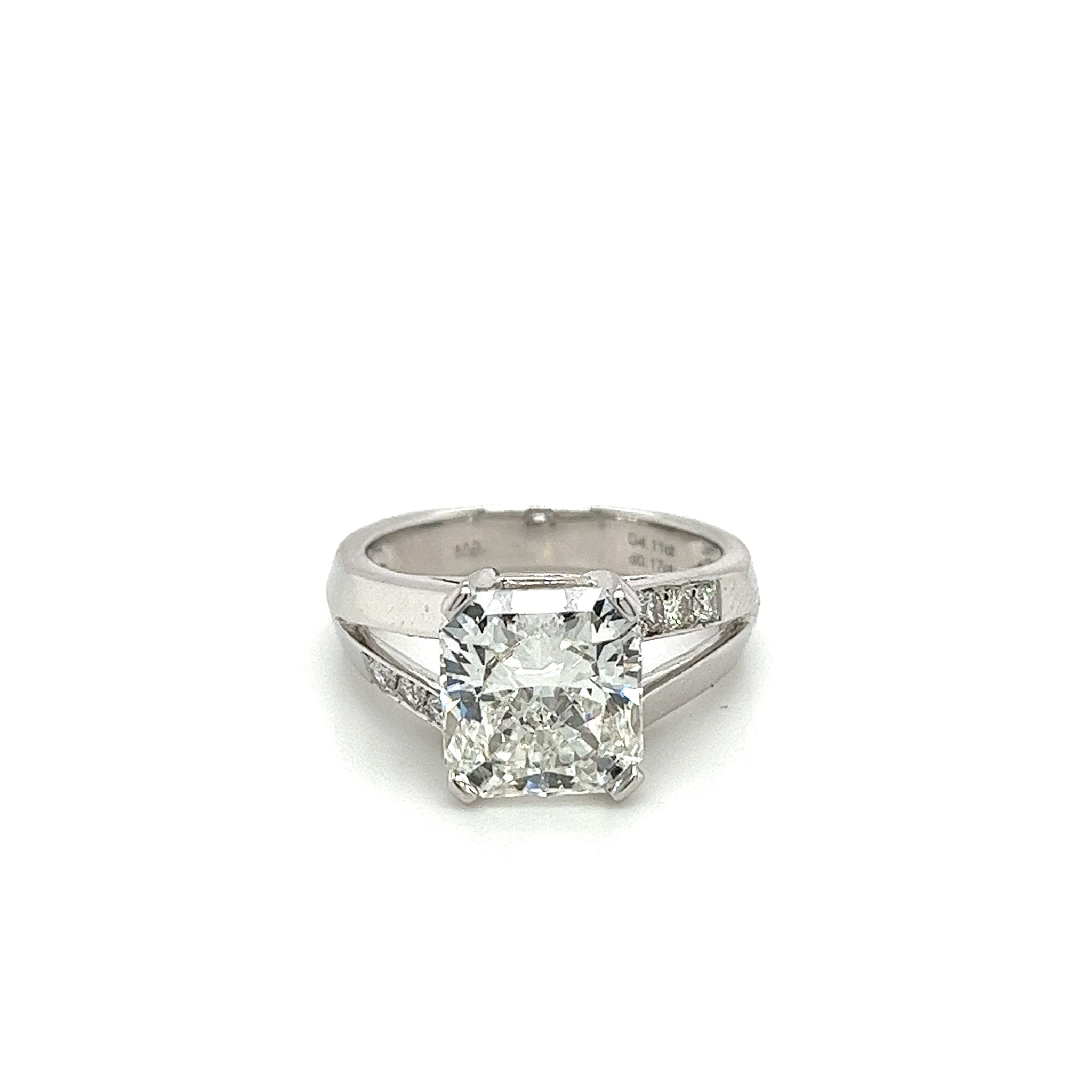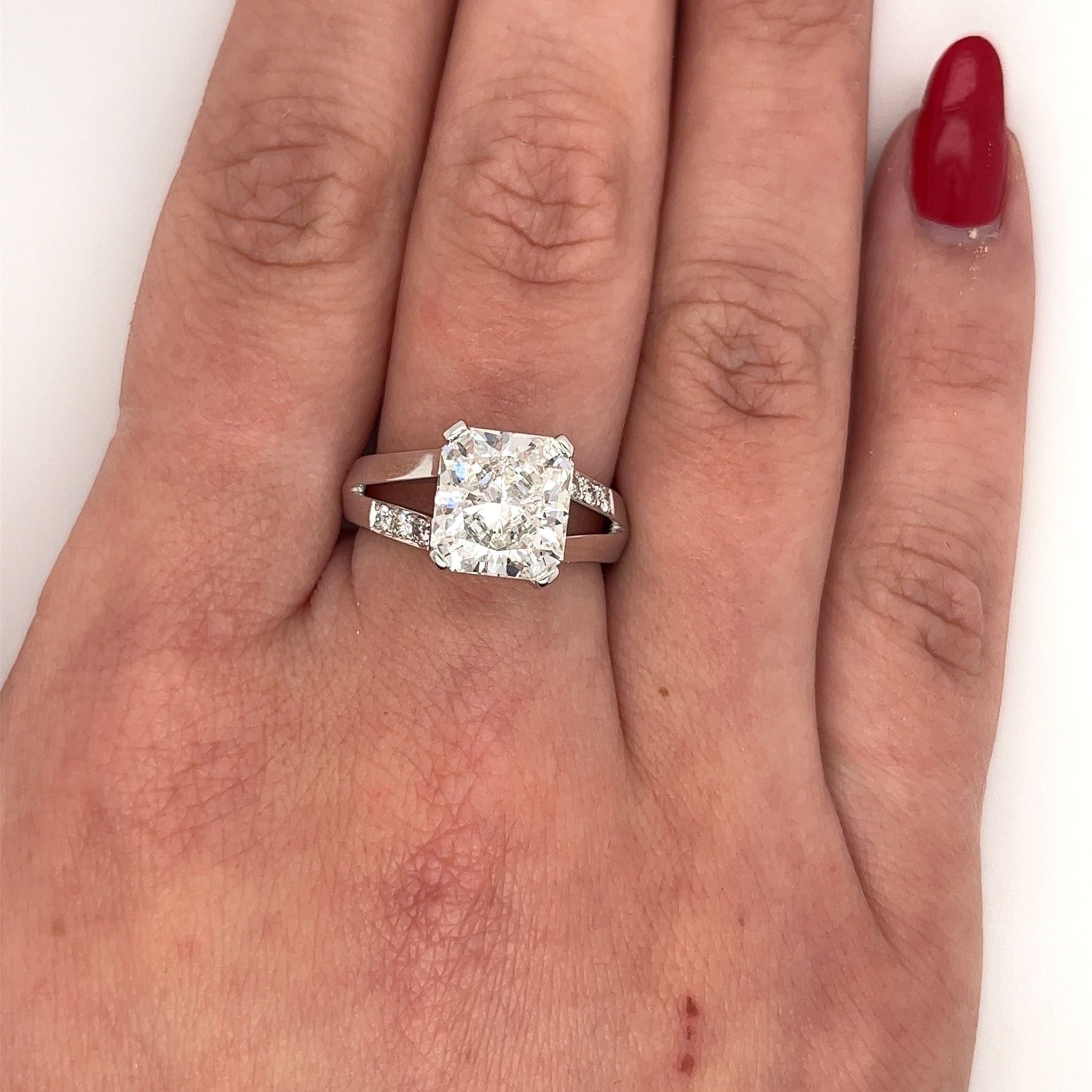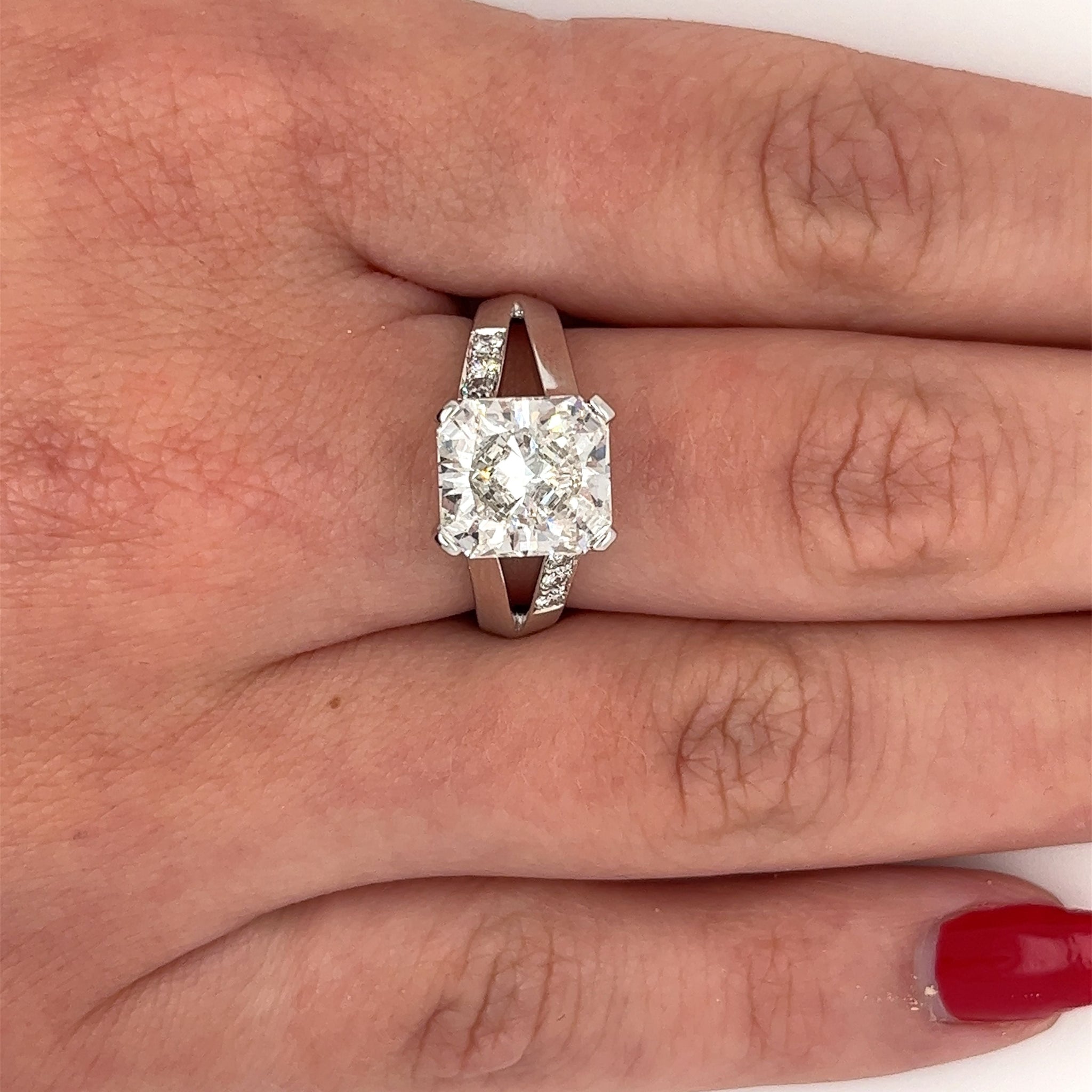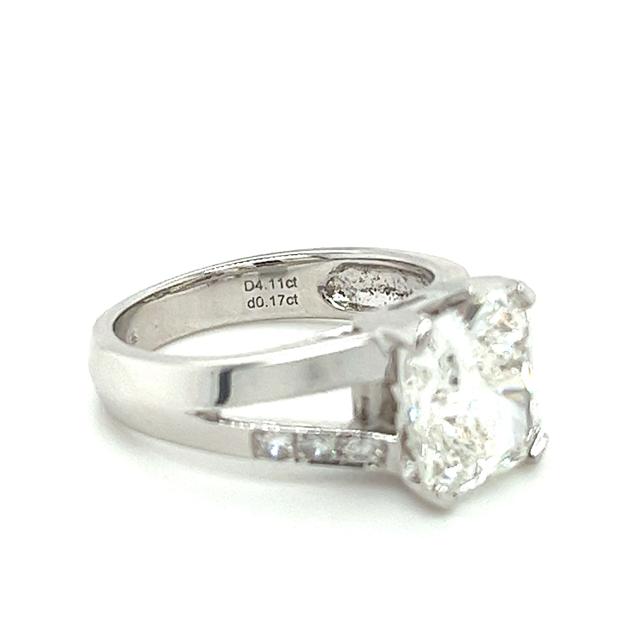 خاتم ألماس مقطوع بشكل مشع وزنه 4.11 قيراطًا مزروع في المختبر في Ring جانبي من الألماس مقطوع بشكل مقسم
