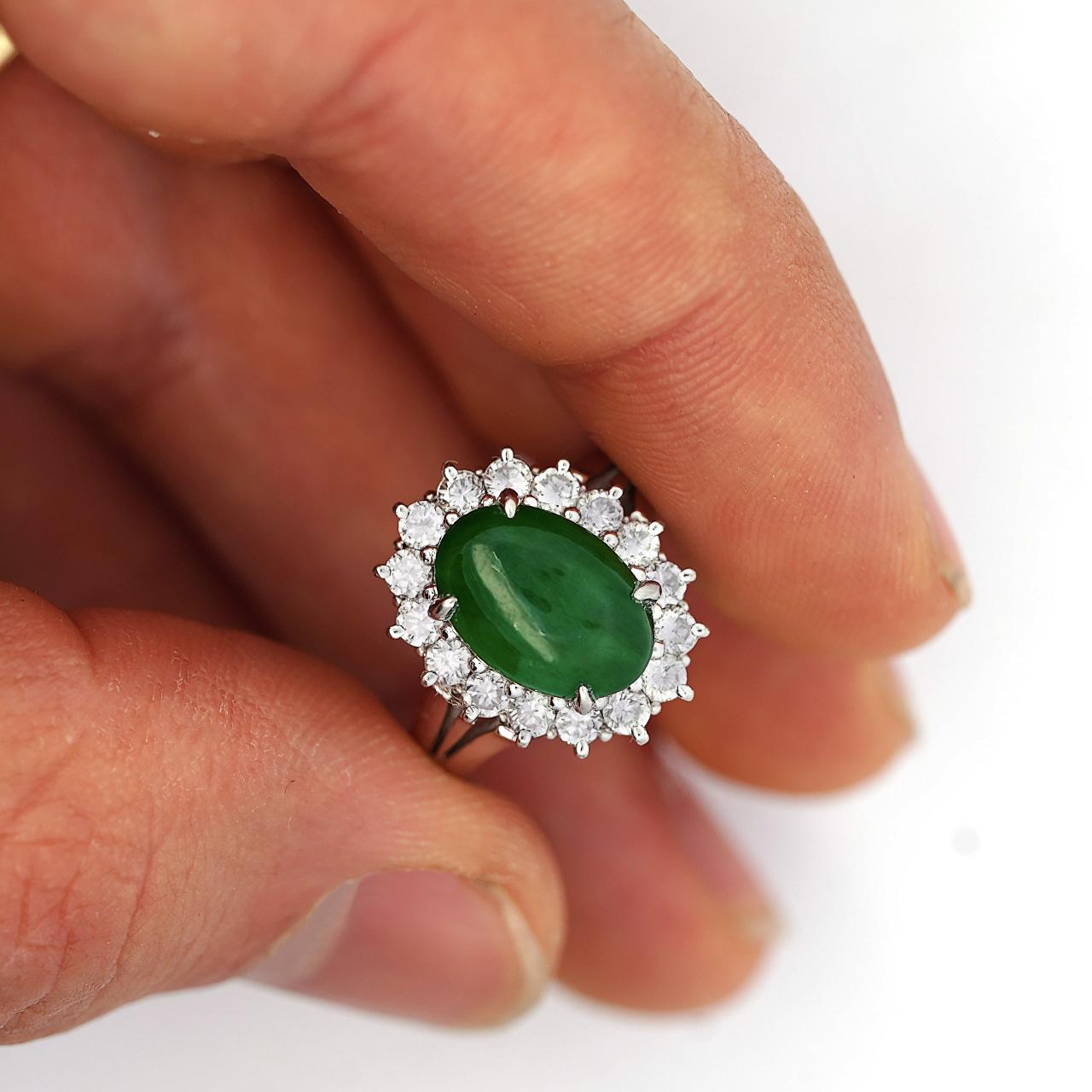 Measurements: 11.70 x 8.16 x 3.62mm jade, 17 x 13.5mm ring face, 9.40 grams total weight