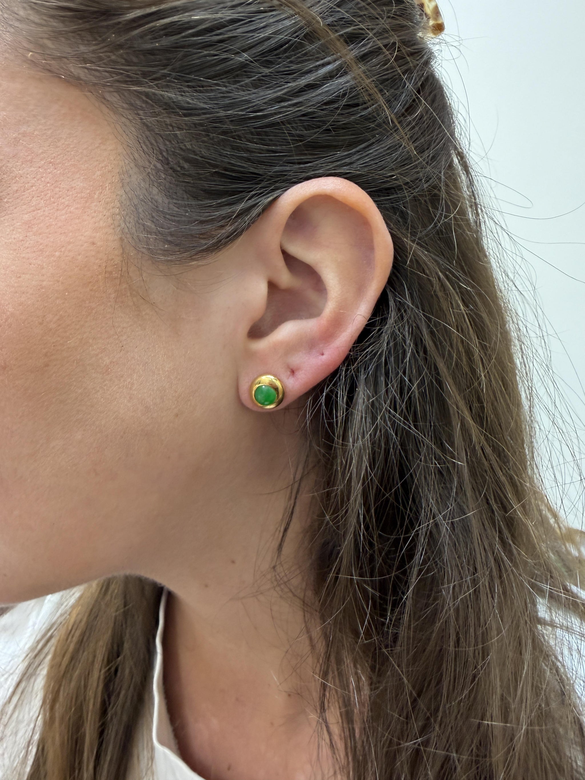 Natural Oval Cabochon Jadeite Jade Bezel Set in 18K Yellow Gold Stud Earrings