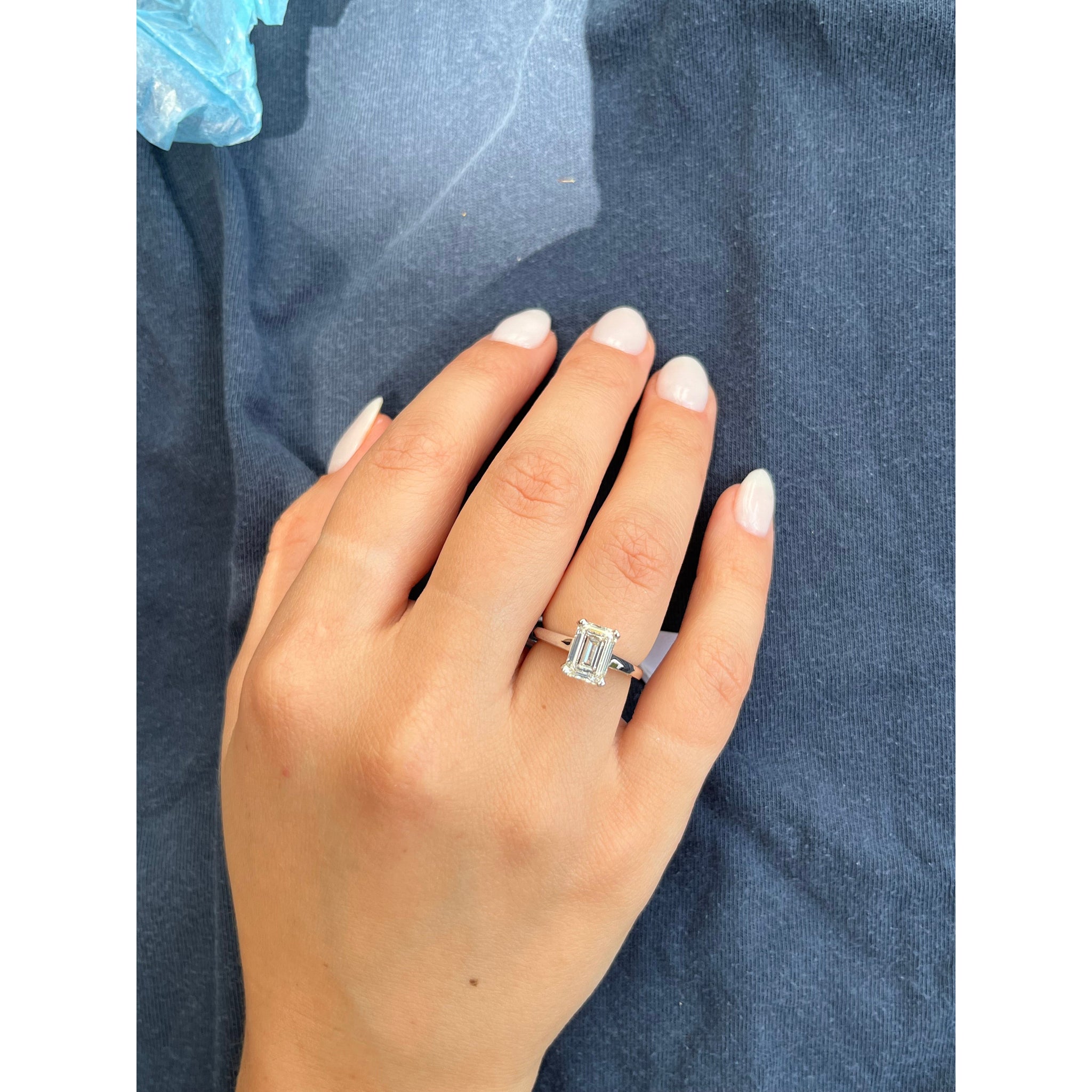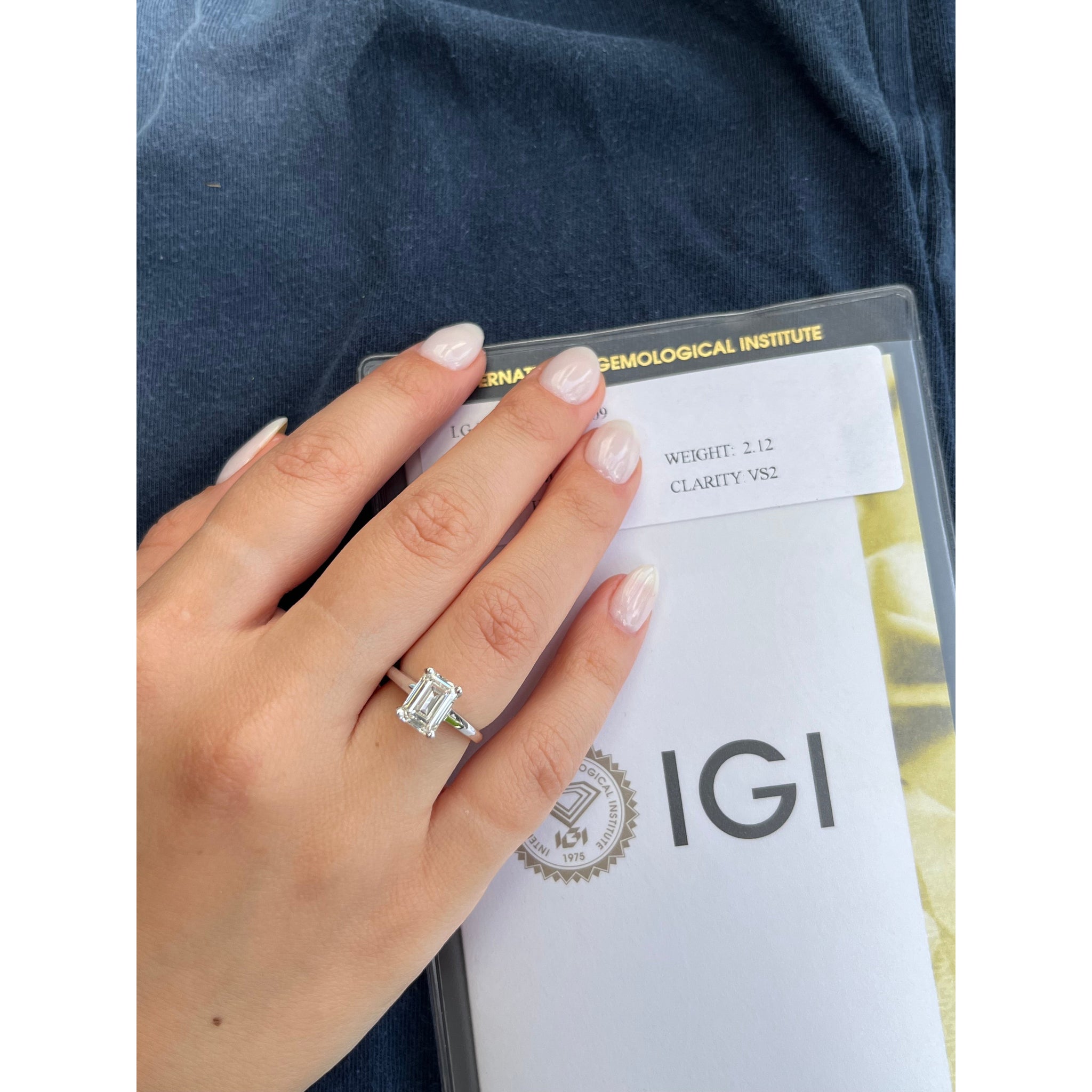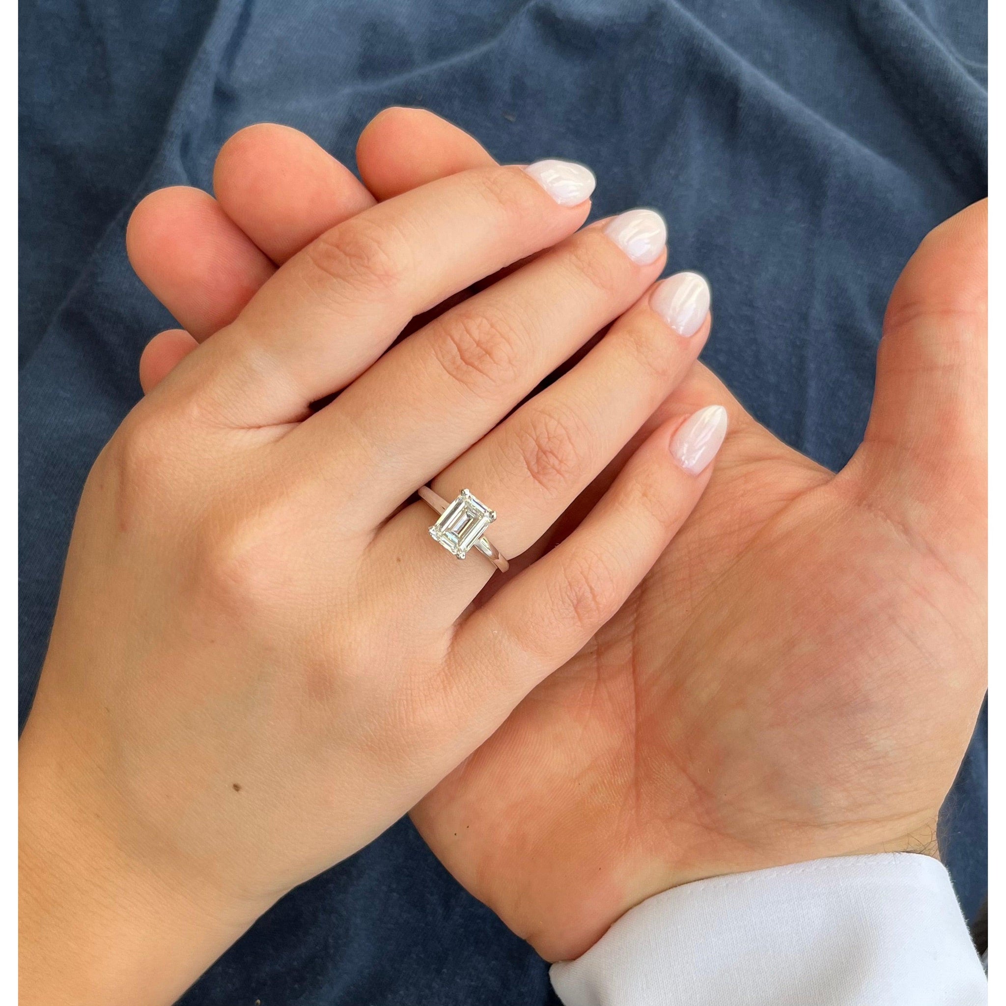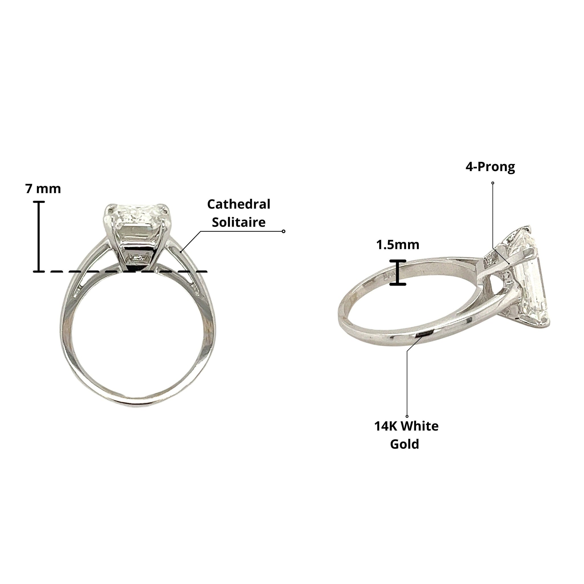 2.12 quilates, esmeralda corte, color H, pureza VS2. Anillo de compromiso de diamante de laboratorio corte esmeralda de 2.12 quilates en oro macizo de 14k con montura solitaria tipo catedral.
