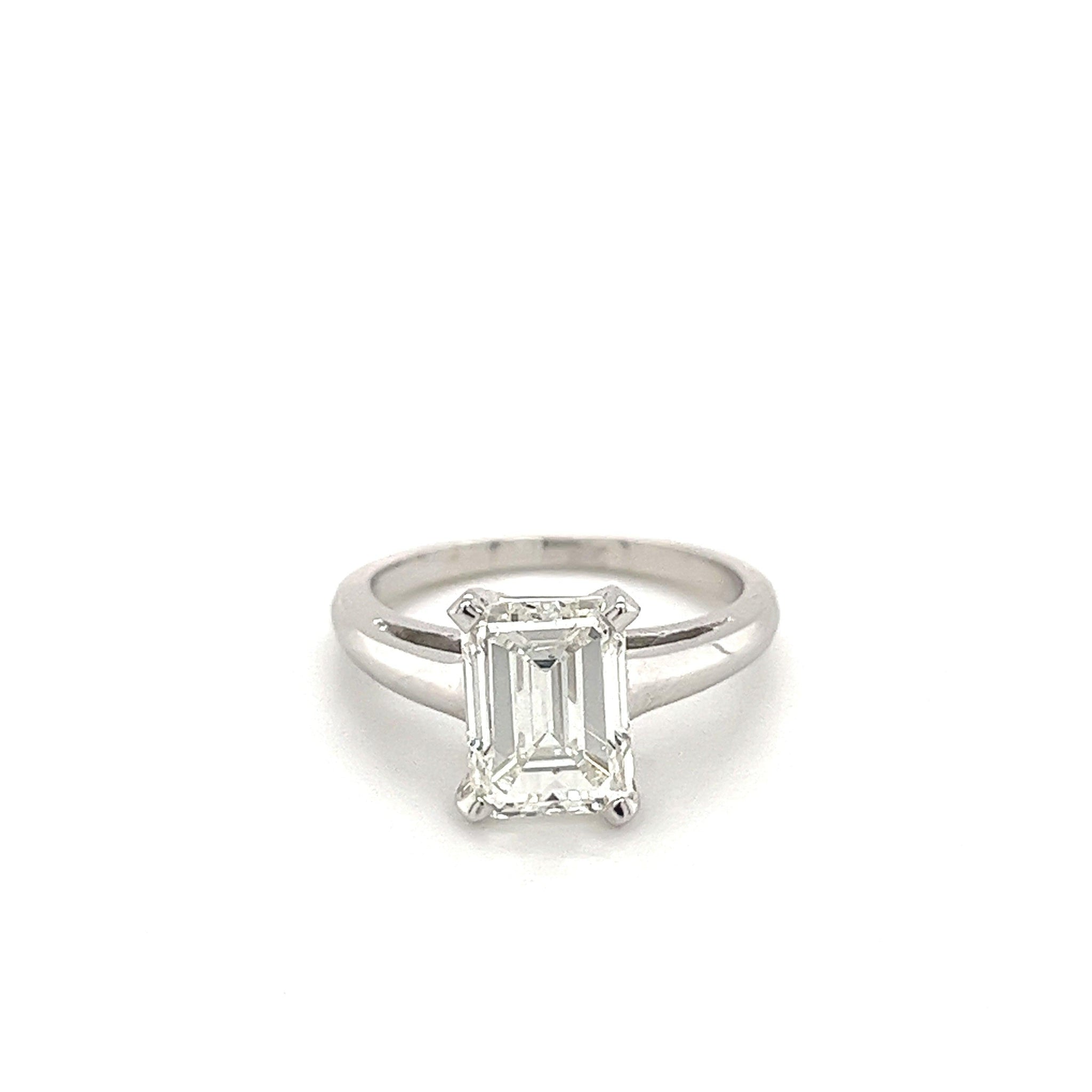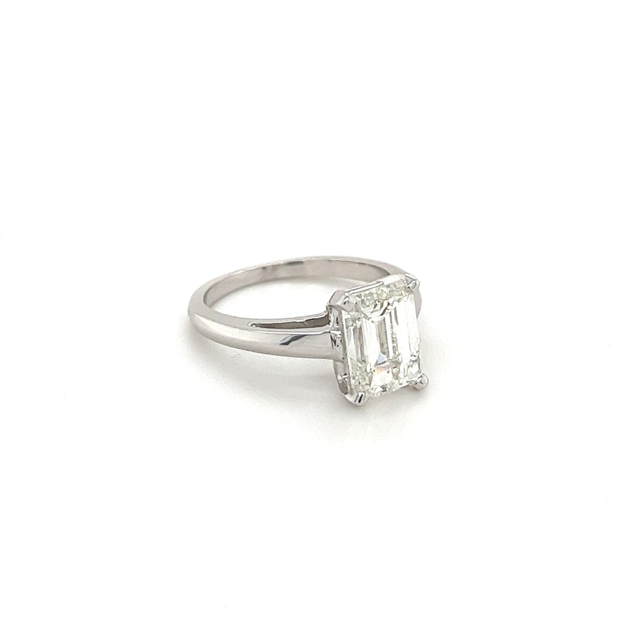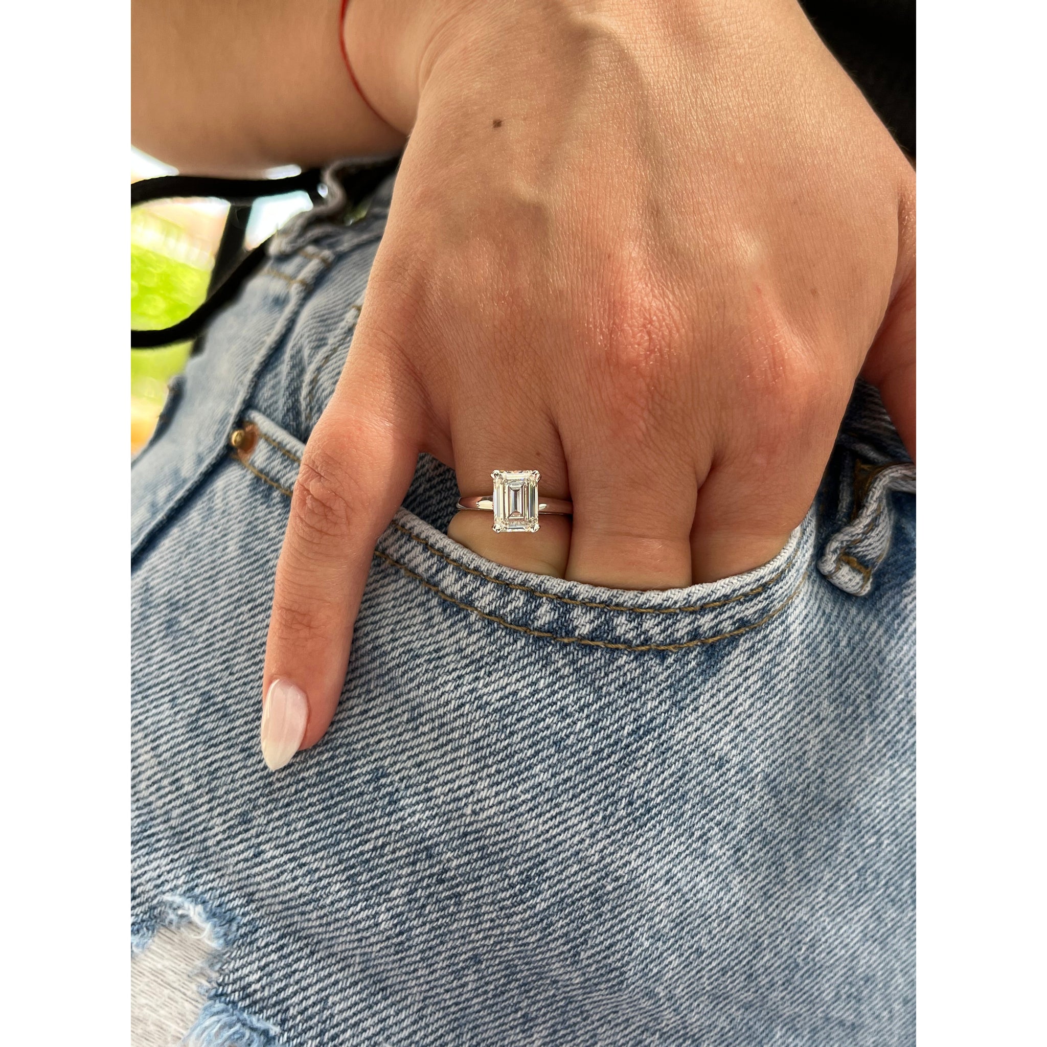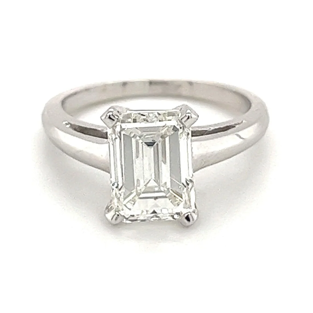 2.12 quilates, esmeralda corte, color H, pureza VS2. Anillo de compromiso de diamante de laboratorio corte esmeralda de 2.12 quilates en oro macizo de 14k con montura solitaria tipo catedral.