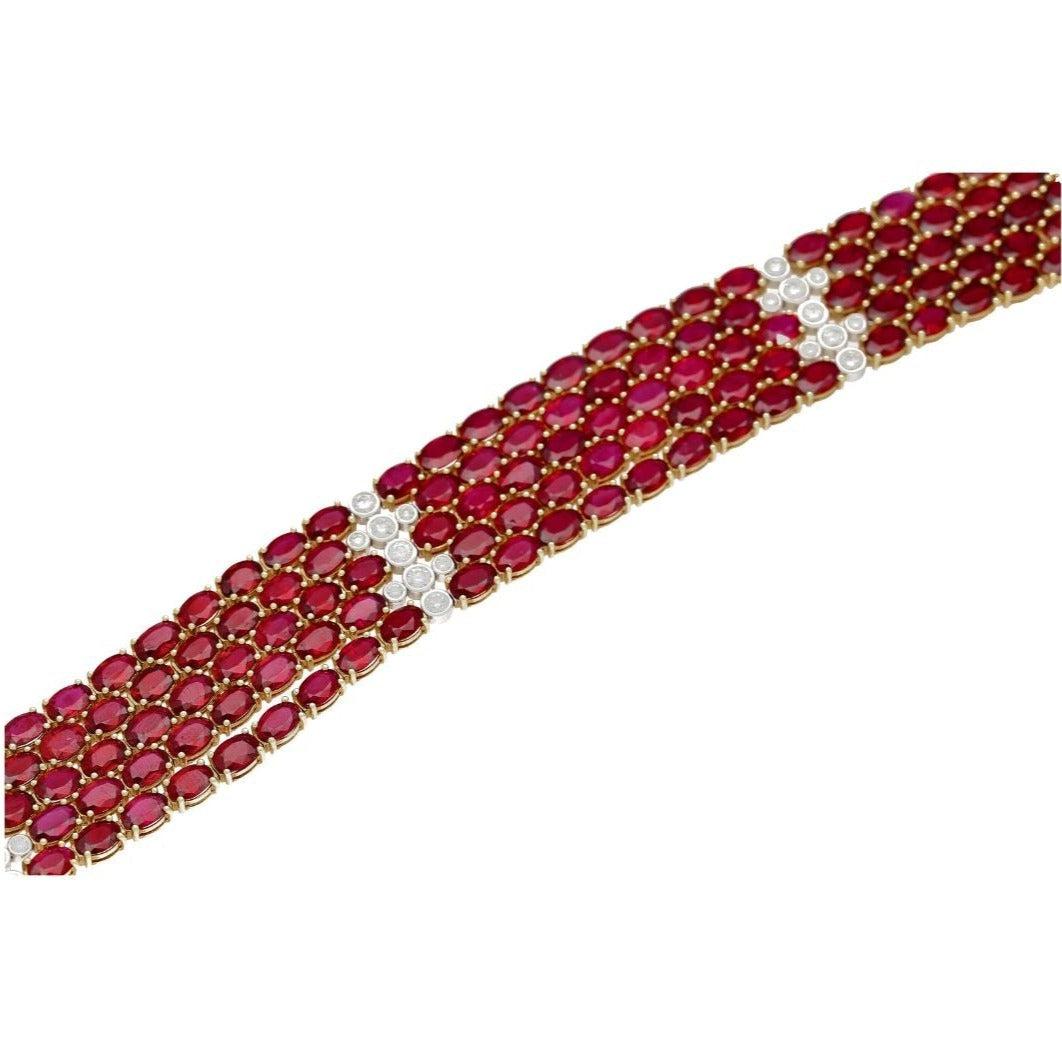 72 Carat Oval Ruby 5-Row Multi Link Tennis Bracelet in 18K Gold