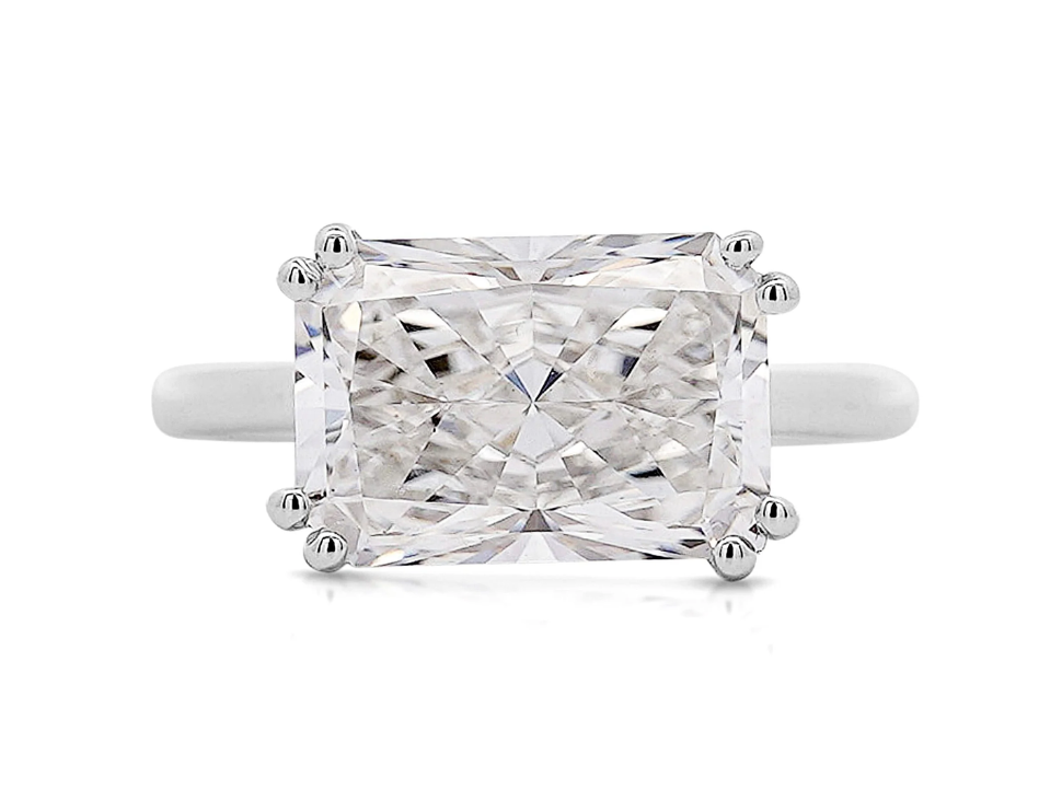 IGI Cert. 4.25 Carat Radiant Cut Lab Grown Diamond East West Engagement Ring