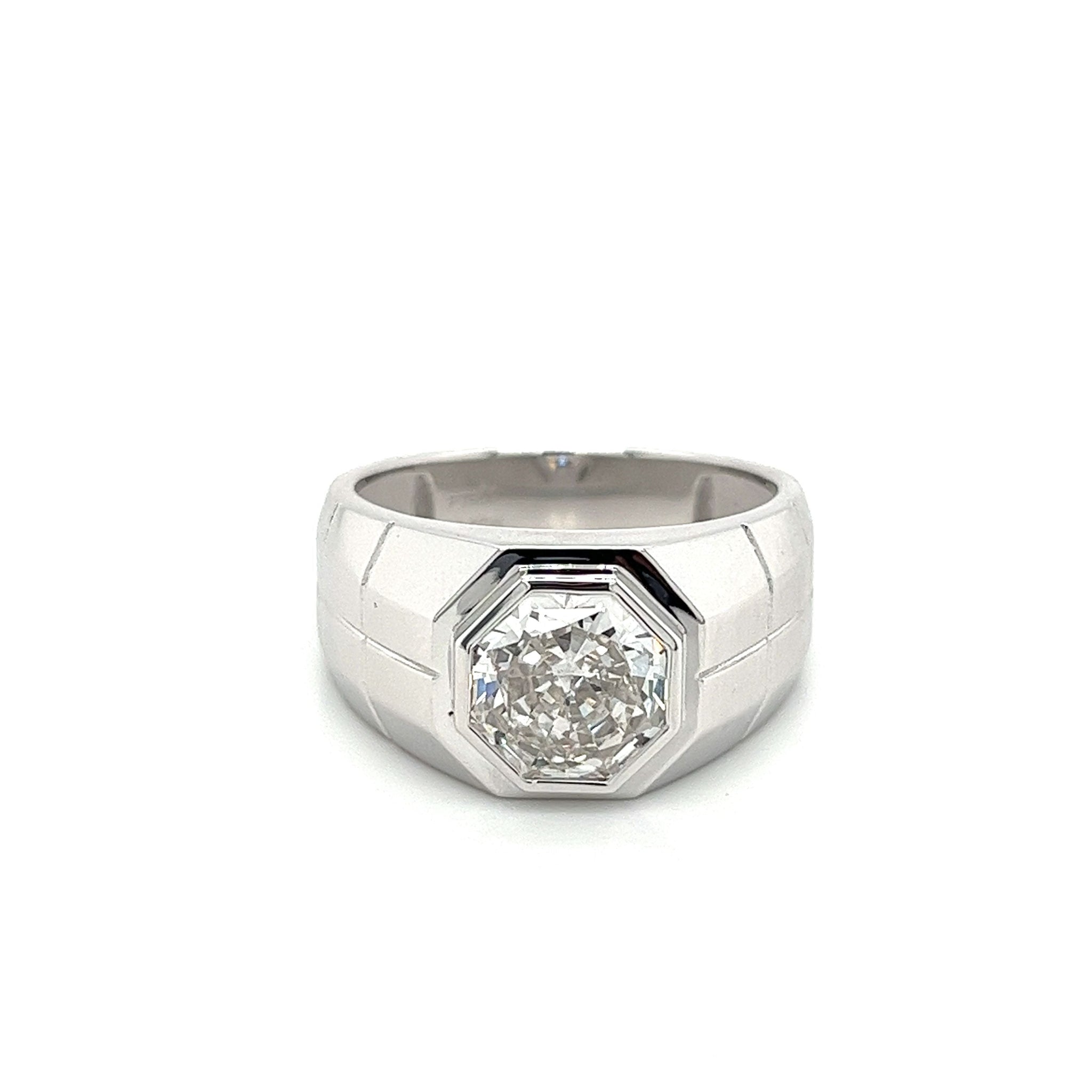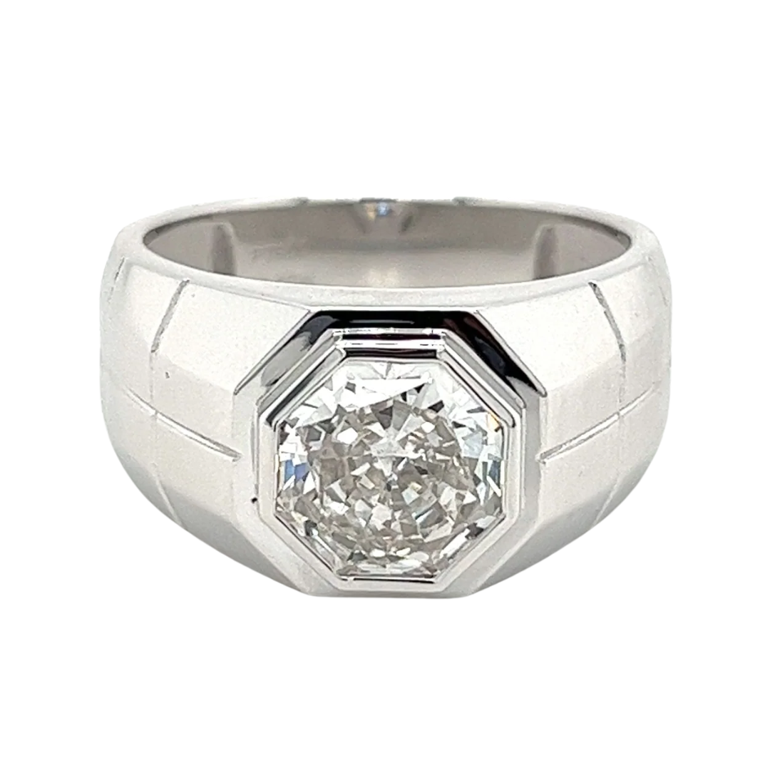 Bague Solitaire Sertie Clos 3 Carats Octogone Diamant CVD de Laboratoire pour Homme en Platine