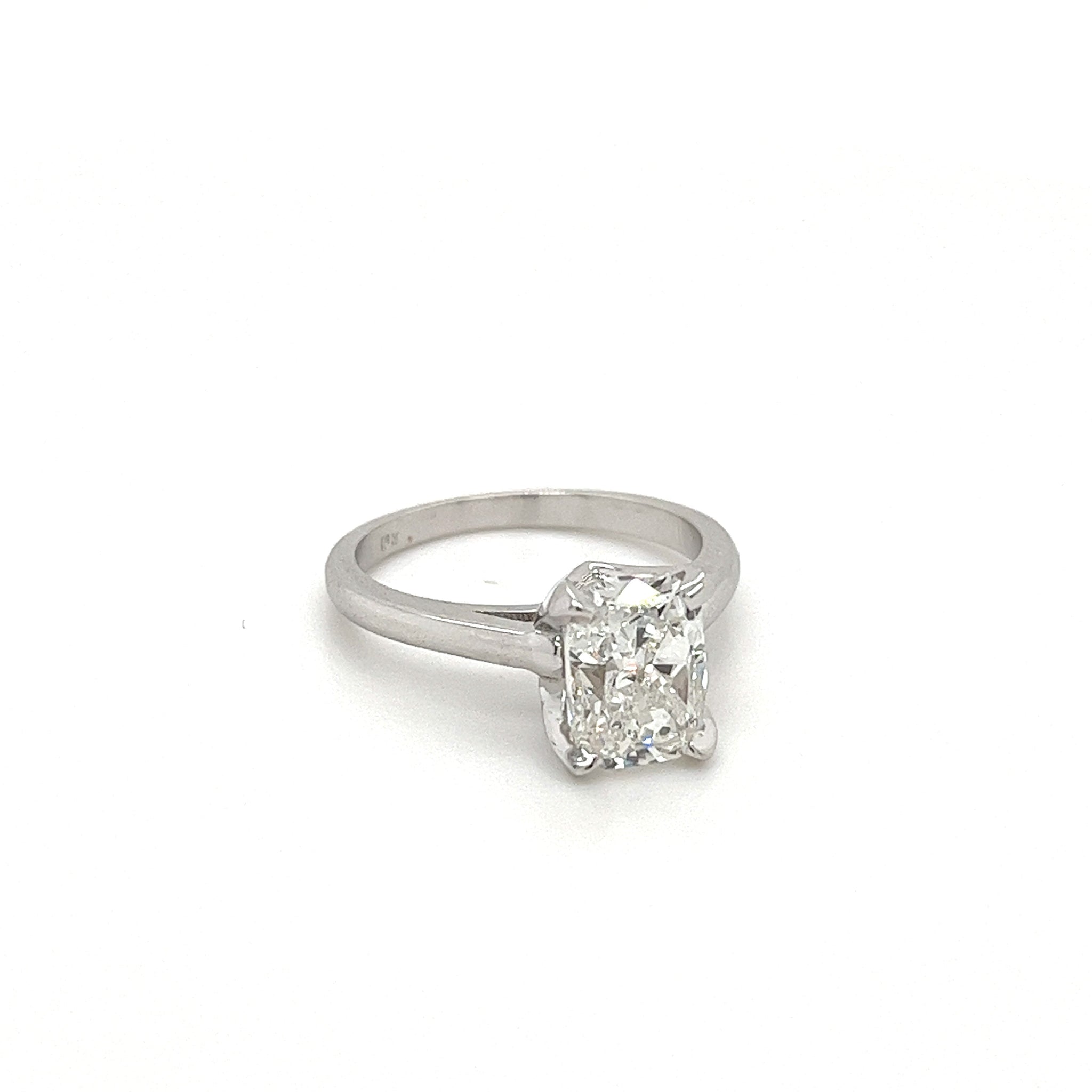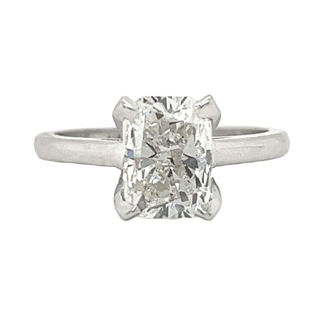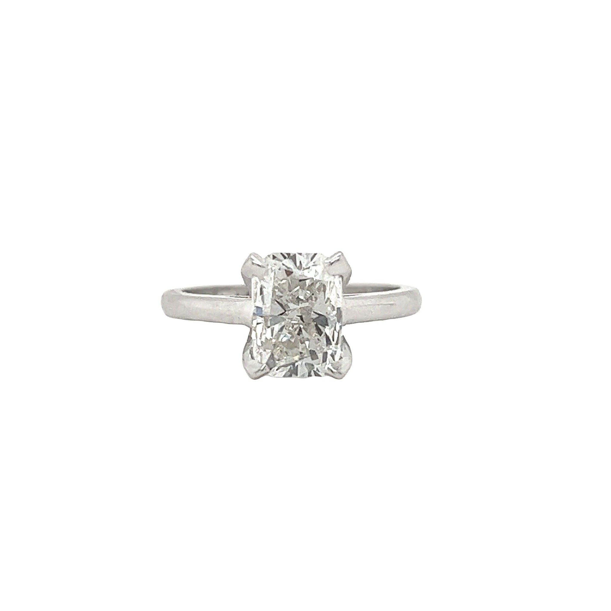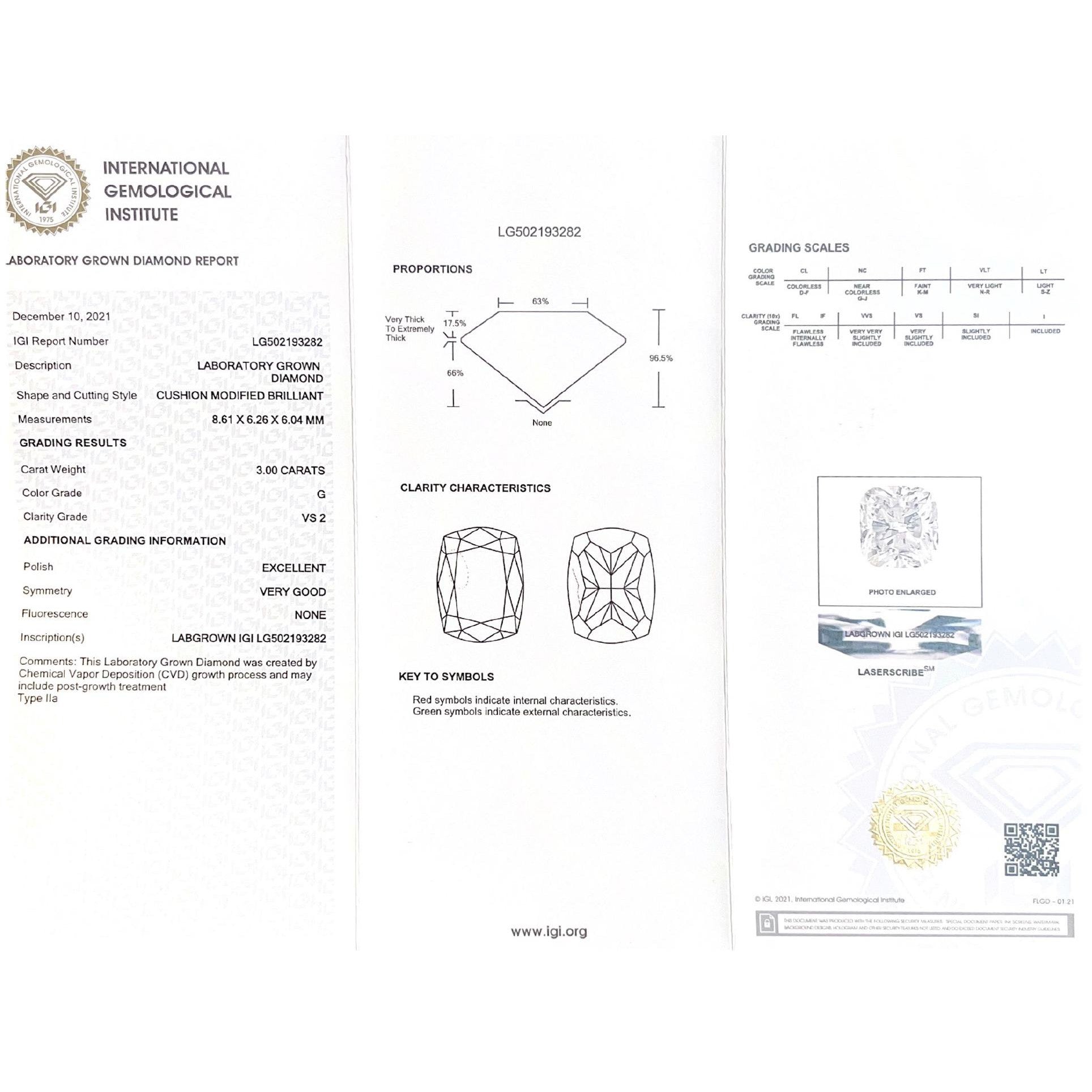 Bague de Fiançailles en Diamant de Laboratoire de 3,00 Carats, Taille Coussin Allongée, en Or Blanc 18k, Monture Solitaire. La pierre centrale est d'une taille excellente, avec une forme de coussin allongée qui ressemble à une taille radiant. Une pierre magnifique que nous pouvons GARANTIR d'émerveiller quiconque la voit.