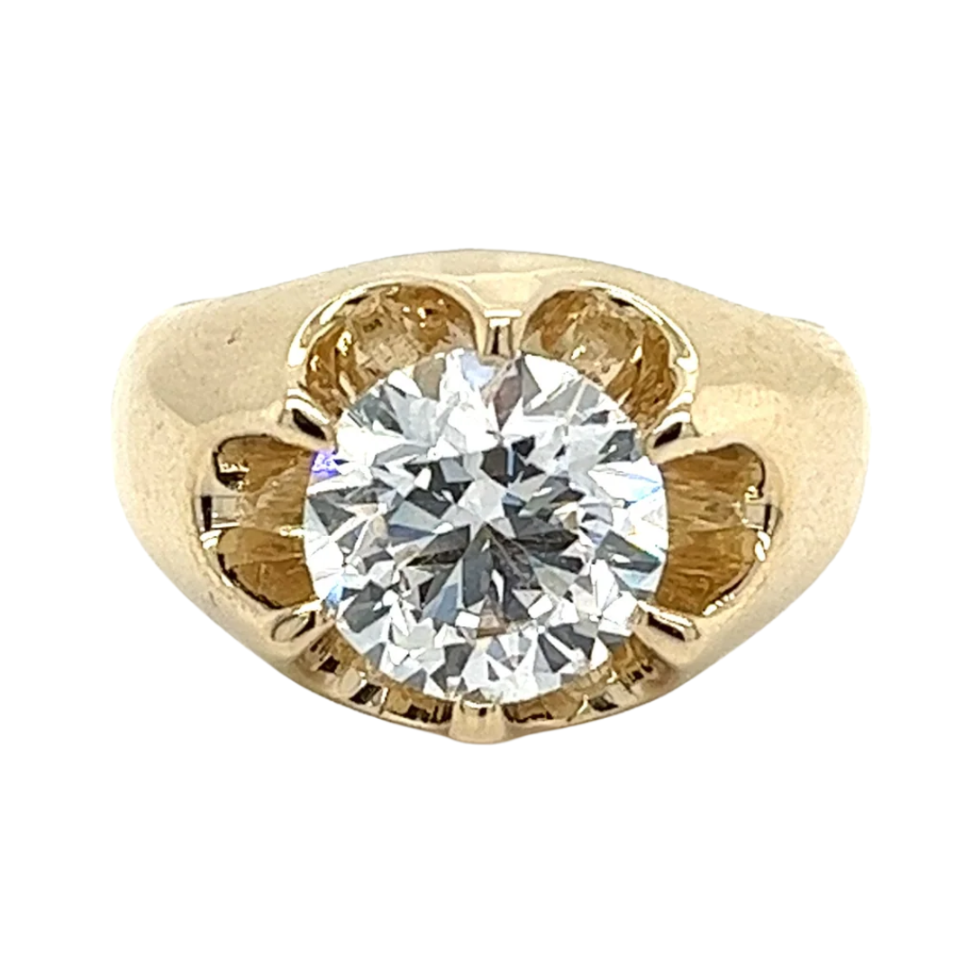Bague pour homme en diamant de laboratoire rond brillant idéal de 3,35 carats certifiée CGL en or jaune massif 14k. Cette bague solitaire présente un sertissage à griffes unique, arrondi et de style ouvert. Les espaces créés mettent en valeur la pierre centrale éclatante.