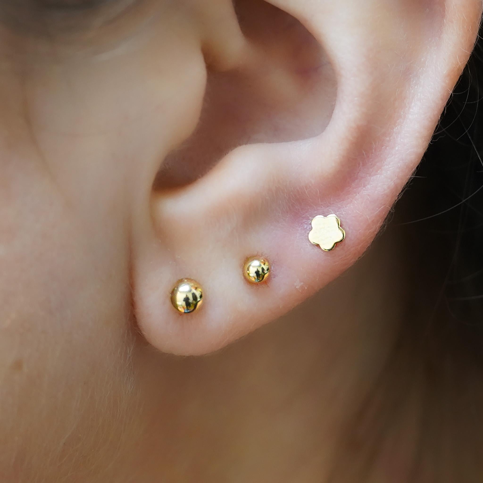 Ideal for cartilage, helix, and tragus studs. Set with the perfect ball or clover that's substantial enough to make a statement on the ear without being too gaudy.