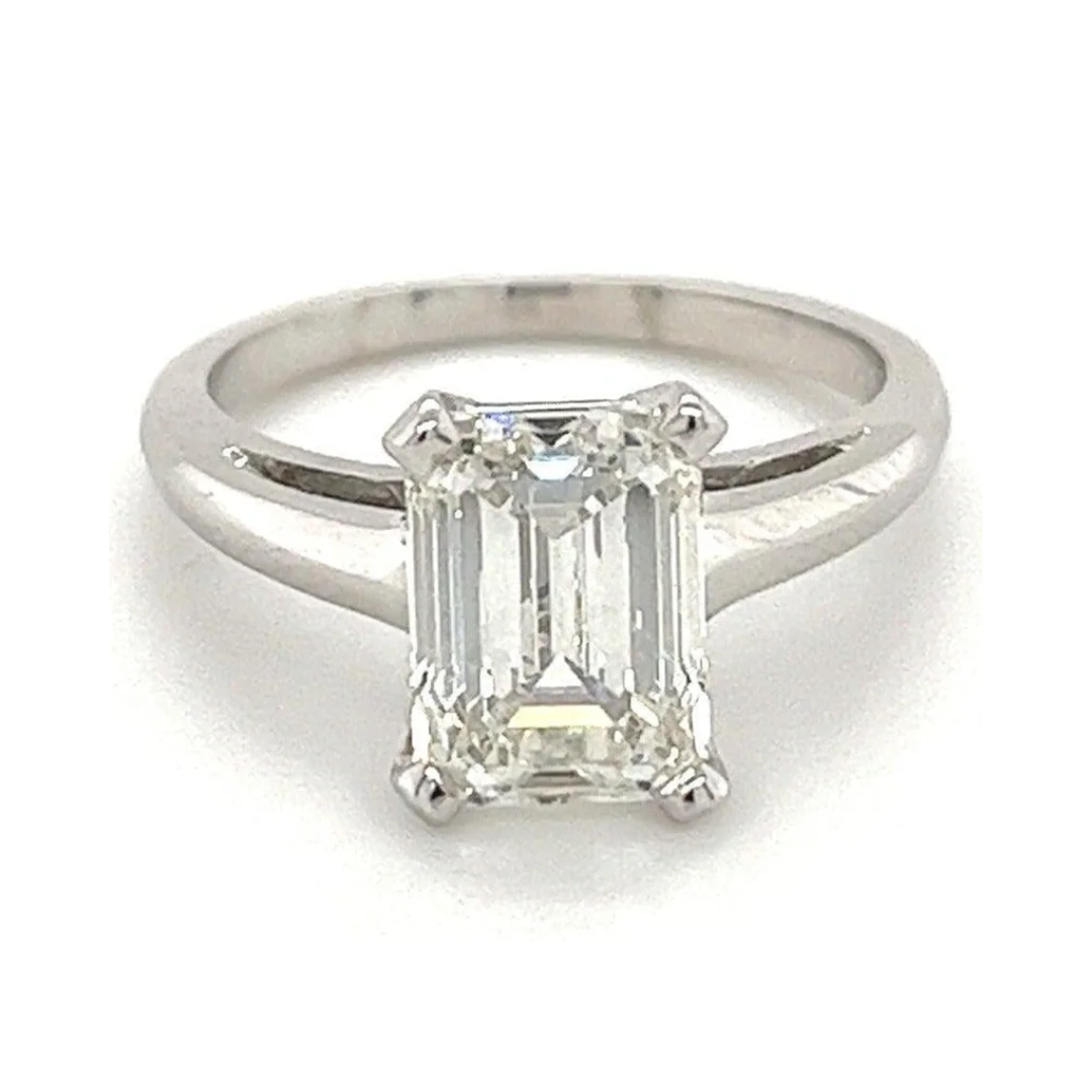 2.54 CARAT Emerald Cut Lab Diamond Engagement Ring in platinum. Emerald cut, G color, VS1 clarity.